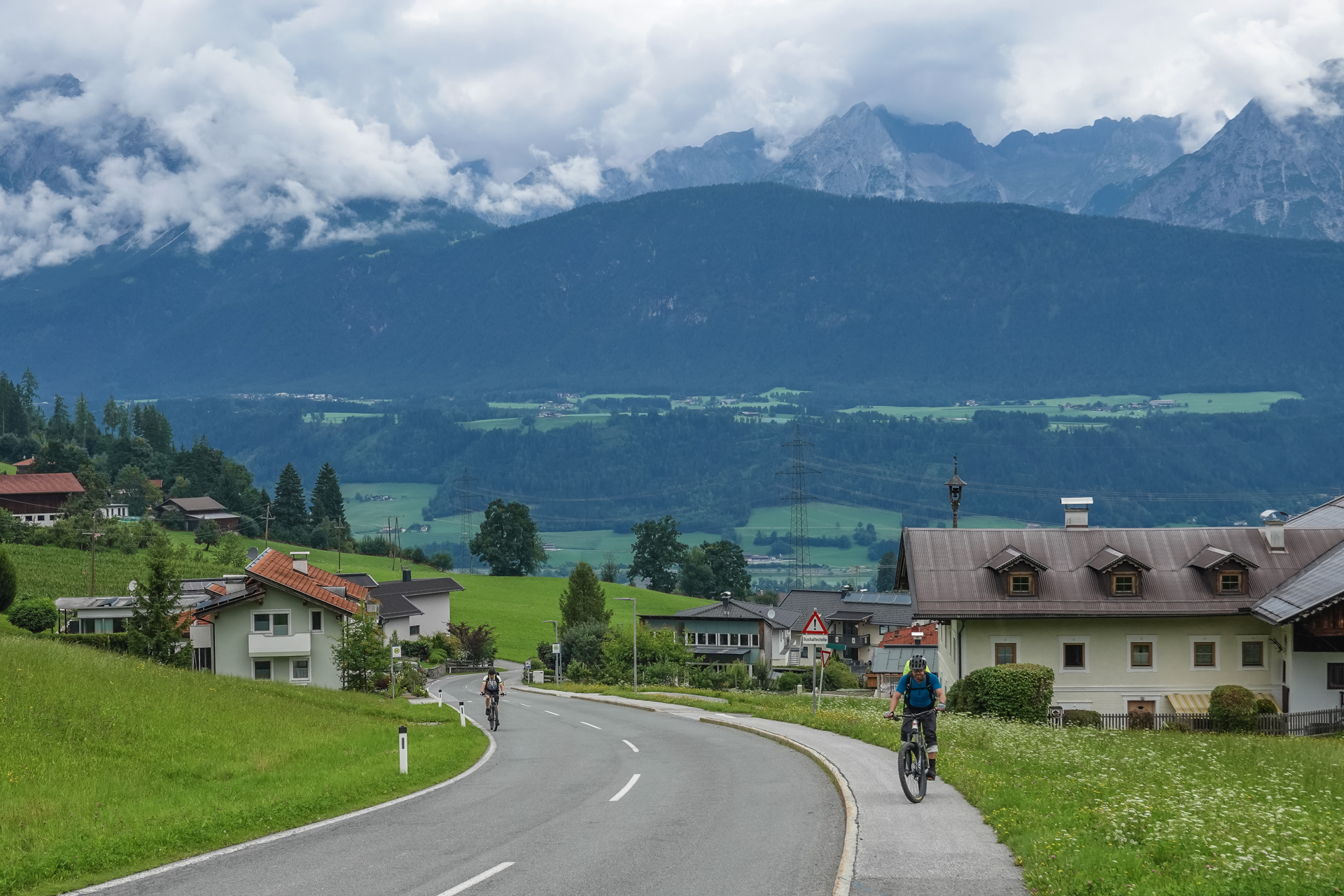 Mit dem Auto fahren wir nach Innsbruck, wo wir das Fahrzeug sicher in der TIVOLI-Tiefgarage abstellen. Im nahegelegenen Olympiazentrum haben wir ein Parkticket organisiert, sodass das Auto für die Dauer unserer Tour überwacht steht. Anschließend ziehen wir uns um, bereiten die Fahrräder vor, und gegen 14:00 Uhr beginnt unsere erste Etappe.
