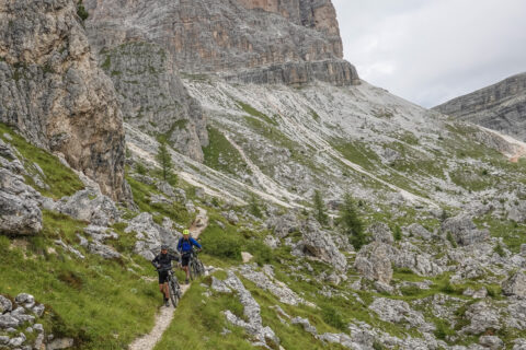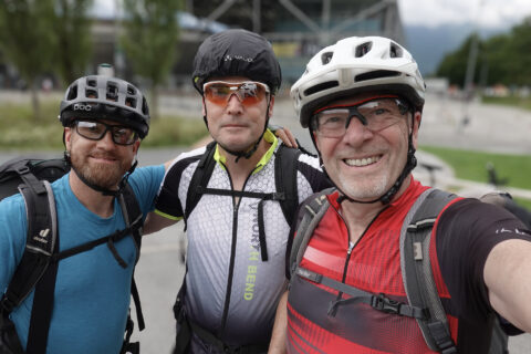 Am Tuxerjoch auf 2.340 Metern angekommen, klart der Himmel stellenweise auf – gelegentlich blinzelt die Sonne durch die Wolken. Dann folgt das Highlight des Tages: Eine spektakuläre Abfahrt über 15 Kilometer, auf der wir knapp 1.000 Höhenmeter verlieren. Rund 65 hervorragend fahrbare Serpentinen bringen Fahrspaß pur – ein echtes Erlebnis für jeden Mountainbiker. Wenn man vorher Probleme mit Spitzkehren hat, hier lernt man es. Weiter geht es ins Wipptal Richtung Brennerautobahn, die wir passieren, bevor wir dem Radweg folgend bis nach Gries gelangen.