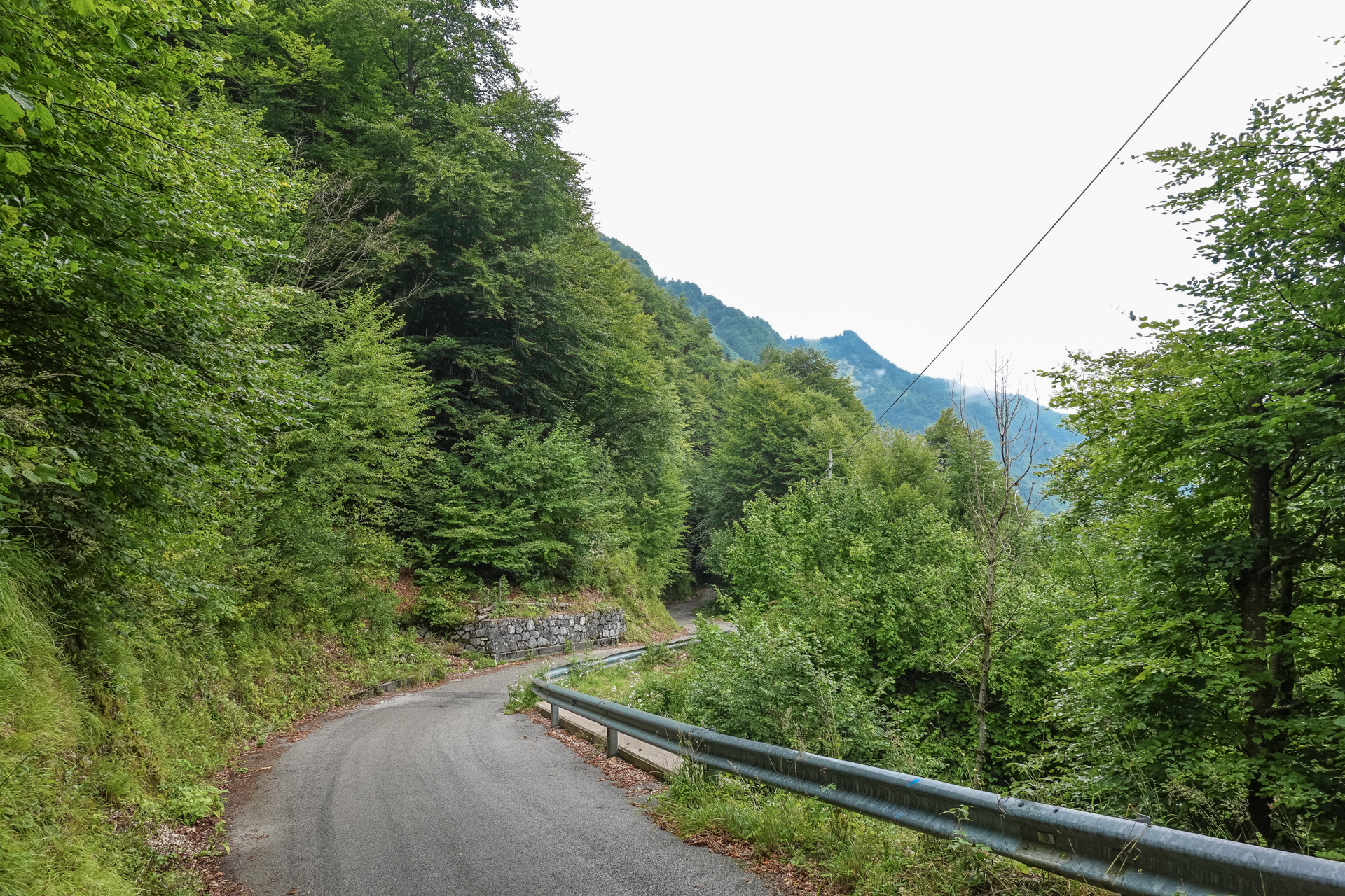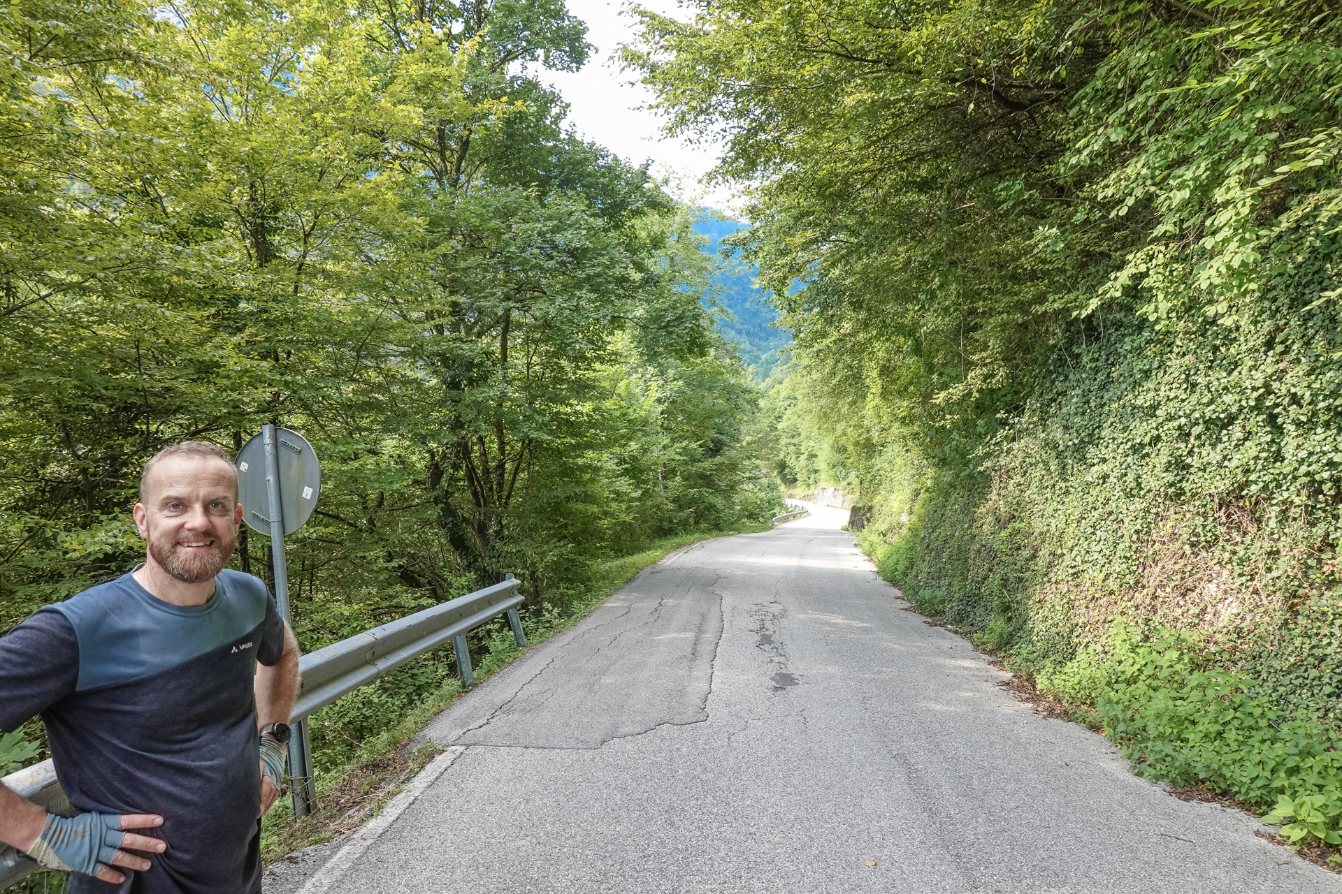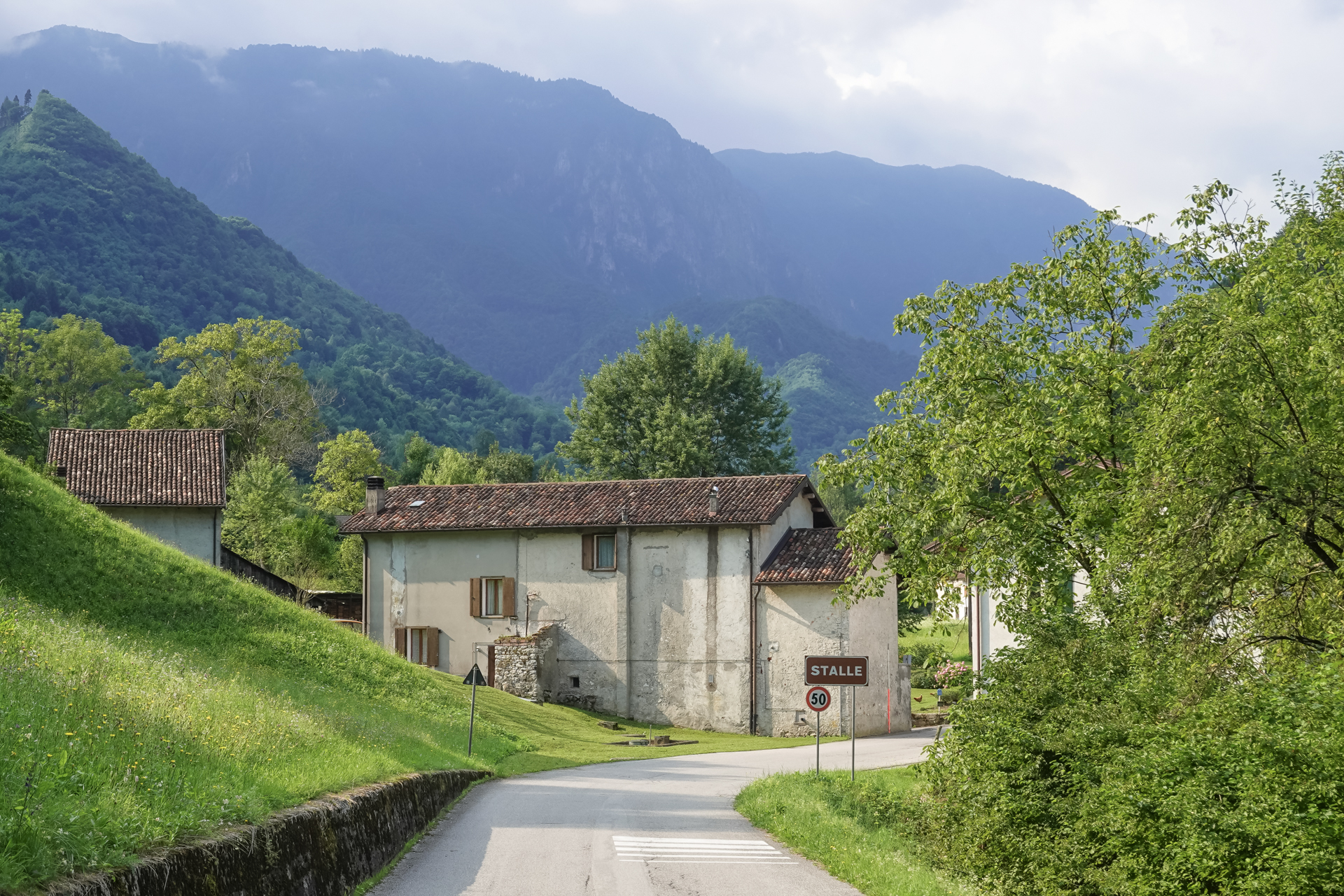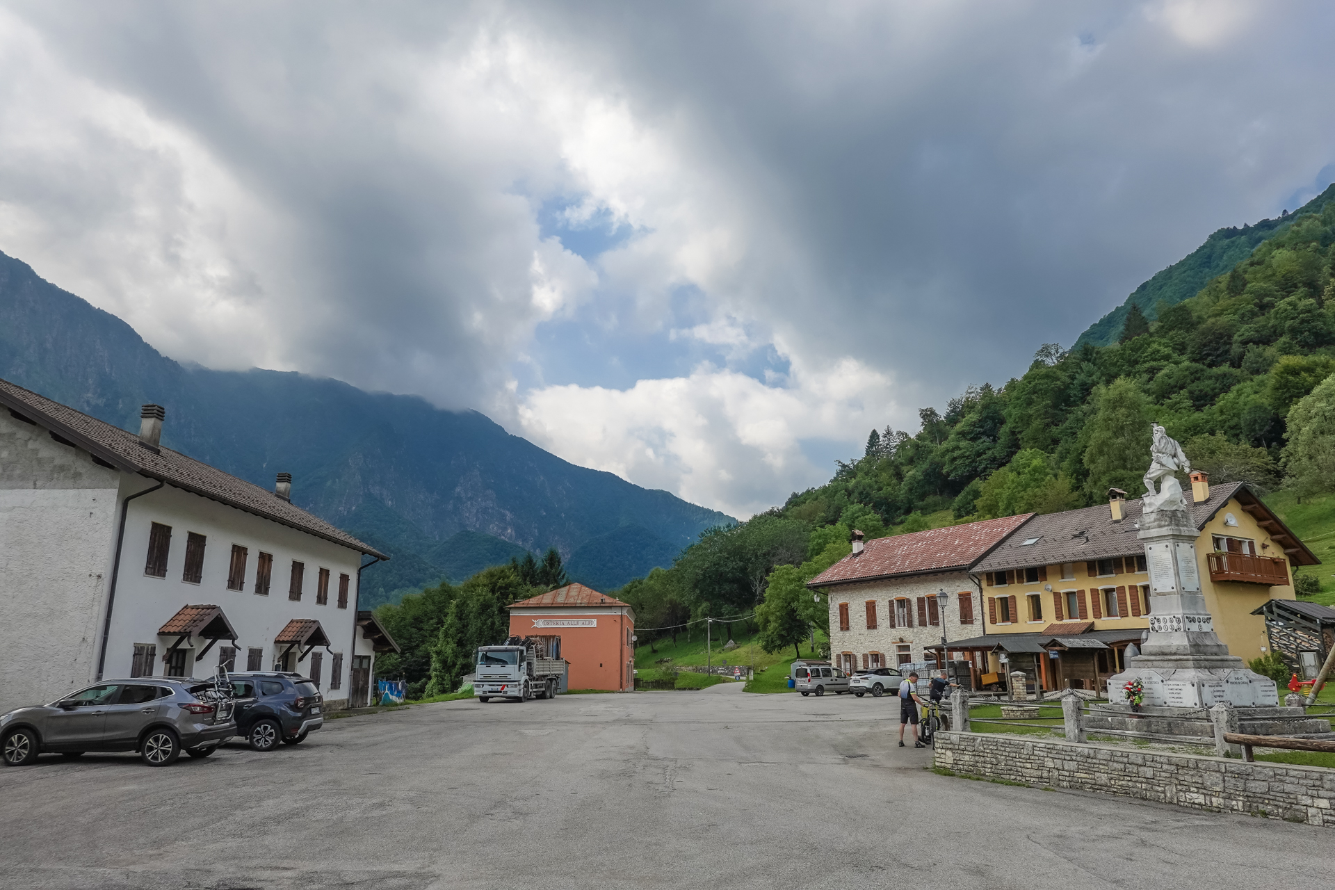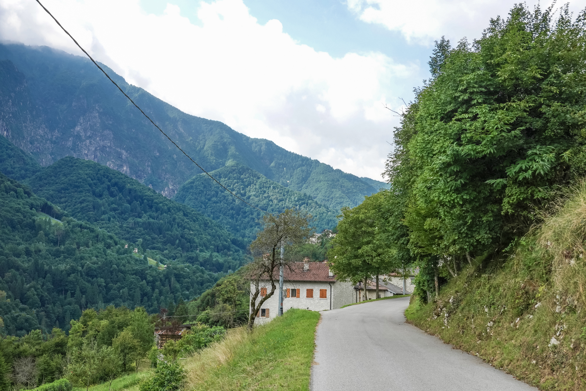 Los ging es von Feltre aus, direkt in Richtung Monte Grappa. Die Luft war schwül, dunkle Wolken hingen über uns, und die Wettervorhersage verhieß Regen – doch noch blieb es trocken. Der Anstieg führte zu drei Vierteln über kleine, enge Straßenpassagen. Wir kurbelten durch schmale Gässchen, kämpften uns über steile Rampen und passierten Dörfer, die fast verlassen wirkten.