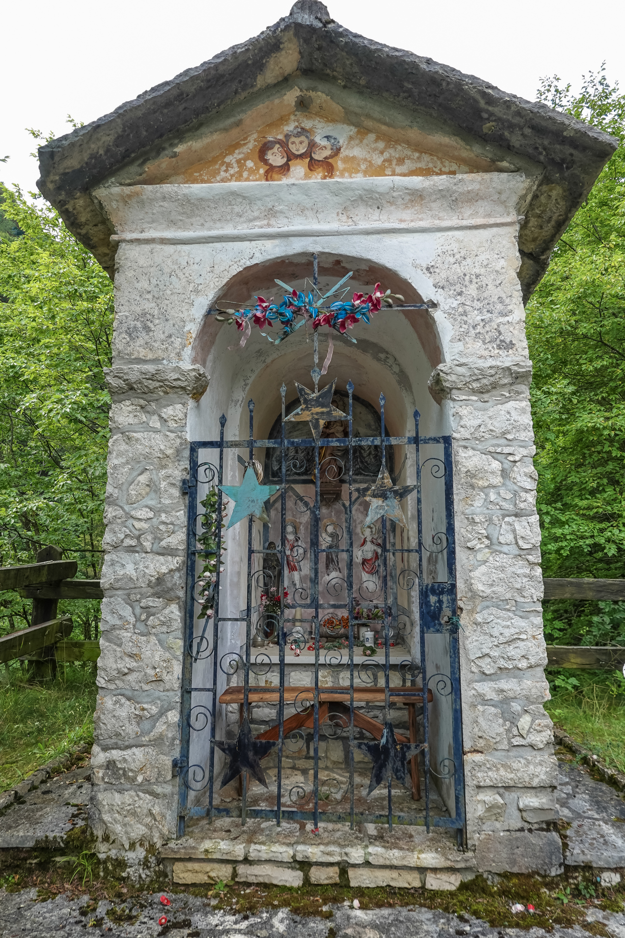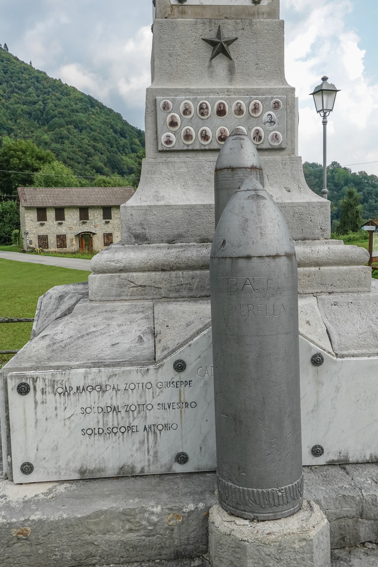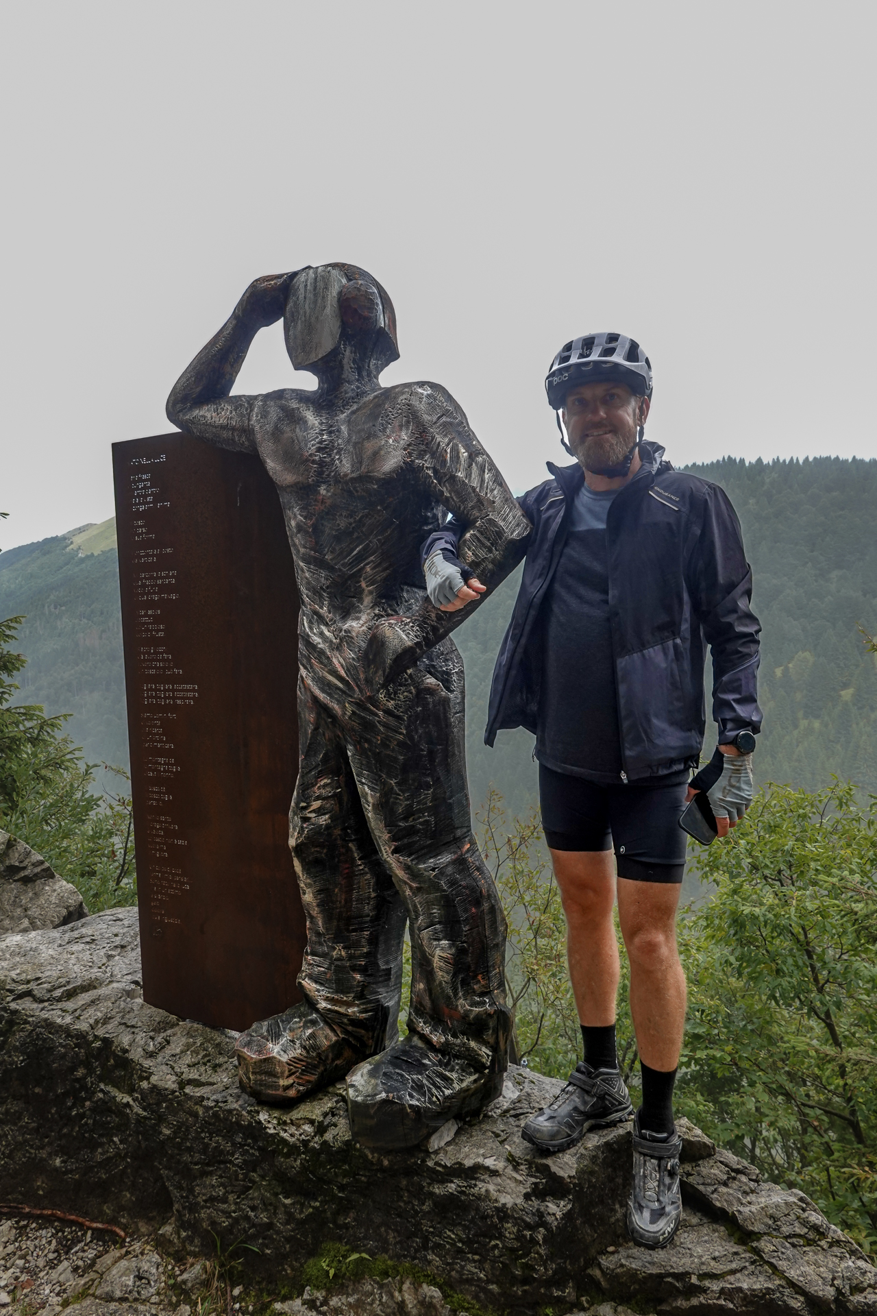Die letzten drei Kilometer mit 300 Höhenmetern führten über einen steilen, verblockten Serpentinenpfad, der uns größtenteils zum Schieben zwang. Doch schließlich war es geschafft: 1.490 Höhenmeter am Stück lagen hinter uns, und wir standen auf dem Gipfel des Monte Grappa. Dort erstreckte sich ein gewaltiges Kriegsdenkmal, das an die Ereignisse des Ersten Weltkriegs erinnert. Hier ruhen über 10.000 Gebeine gefallener Soldaten – ein beeindruckender und zugleich nachdenklich stimmender Ort.